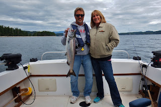 We really saw the county on this three day trip, with fishing trips north to Denham Bay , northeast into Bute Inlet, southeast to Toba Inlet, and south into Georgia Strait. To begin the whole trip, they flew into Campbell River and we started with our cruise up the east side of Quadra Island and to end it all we returned by a circle route down the straits on the west side.